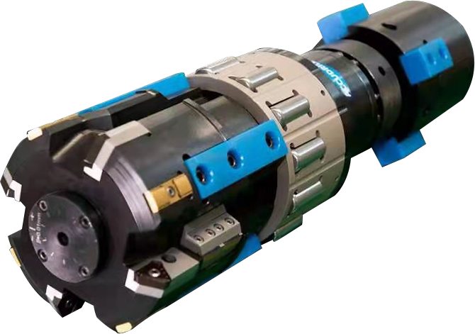 ?采用4+4刀片切削,通過4塊硬質(zhì)合金導(dǎo)向鍵支撐確保鏜刀頭無游隙移動